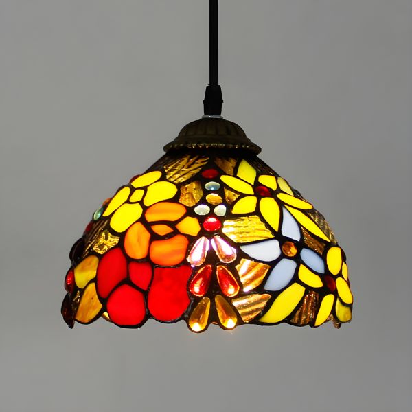 Tiffany Floral Stained Glass Pendant Light, Red & Purple Accent Fixture for Dining Room & Kitchen - 110V-120V Red 8"