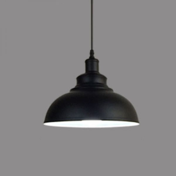 Aluminum Dome Suspended Lighting Fixture Vintage Single Head Living Room Hanging Lamp in Black, 12.5" Wide