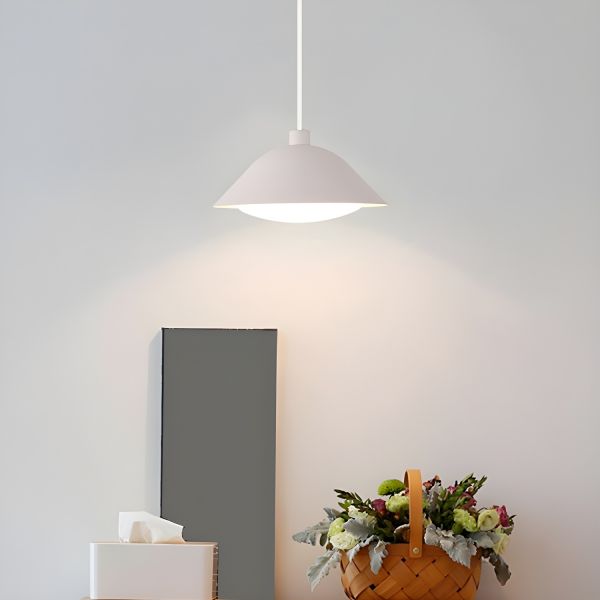 Scandinavian Minimalist Metal Dome Pendant Light, Adjustable Hanging Fixture with Diffuser - 110V-120V White 1 White Light
