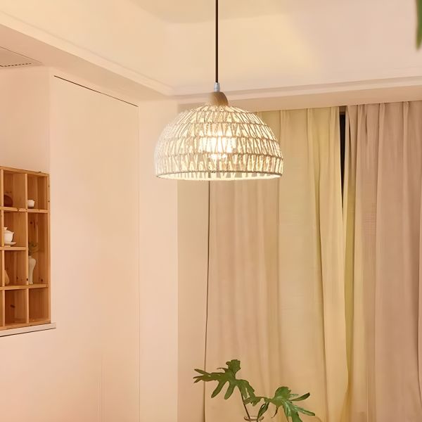 Modern Ivory Pendant Light with Adjustable Hanging Length and Rattan Shade - 110V-120V 1