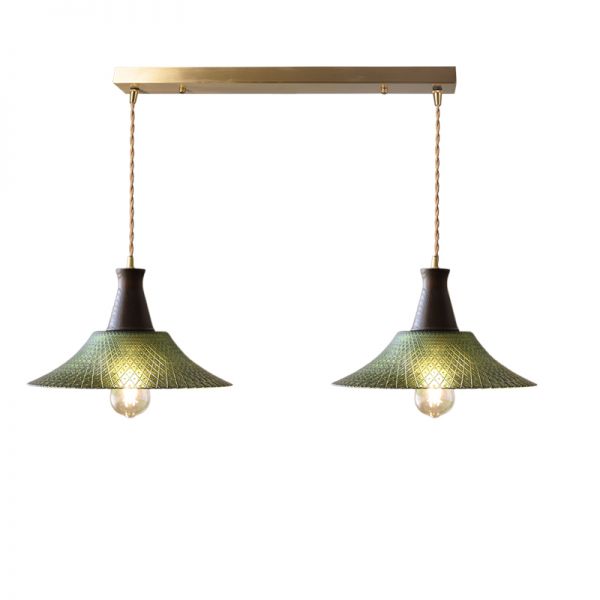 Light Green Pendant Lamp with 2 Lights, Tether Mounting, Angular Glass Shade, Led & Incandescent/Fluorescent, Direct Wired Electric, 110V-120V, 13"
