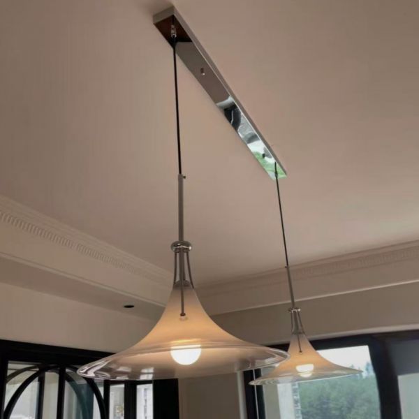 Clear Ceiling Light with 2 Lights, Transparent Glass Shade, Shade Fixture, Vitreous Material, Led & Incandescent/ Fluorescent, and Customizable Hanging Length, 110V-120V