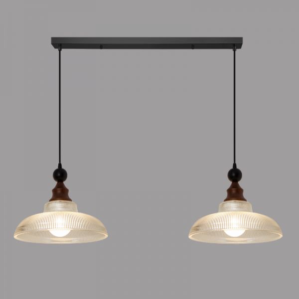 Black Pendant Lamp with 2 Lights, Glass Shade, Regular Fixture, and String Mounting for Direct Wired Electric, 110V-120V