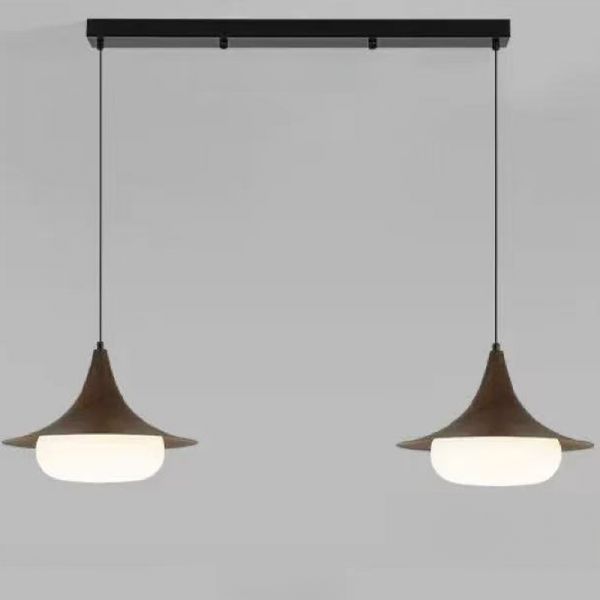 Mid-Century Walnut Finish Pendant Light, Integrated LED Hanging Lamp with Glare-Free Acrylic Shade - 2 110V-120V