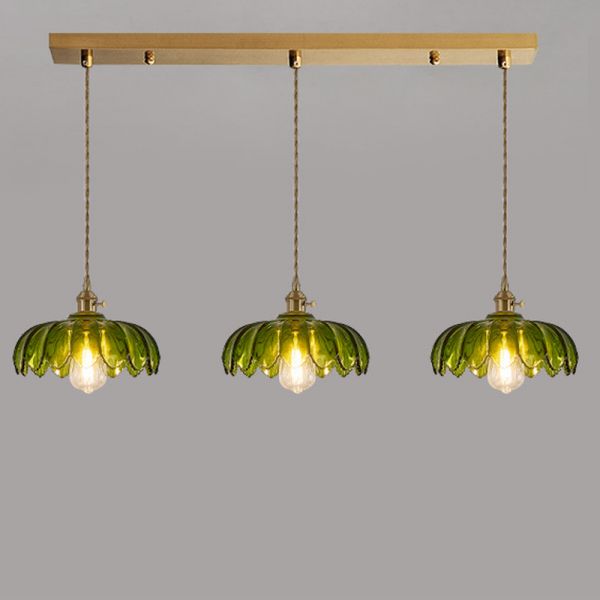 Light Green Pendant Lighting with Ambient Light, 3 Lights Shade, LED Angular Vitreous Fixture, 110V-120V, Petal
