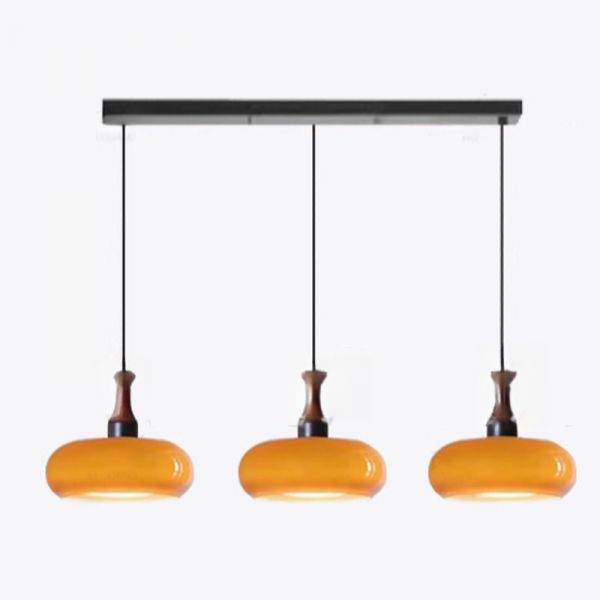 3 Lights Thread Canister Pendant Lighting with Third Gear and Lemon Color Vitreous Shade, Yellow, 110V-120V