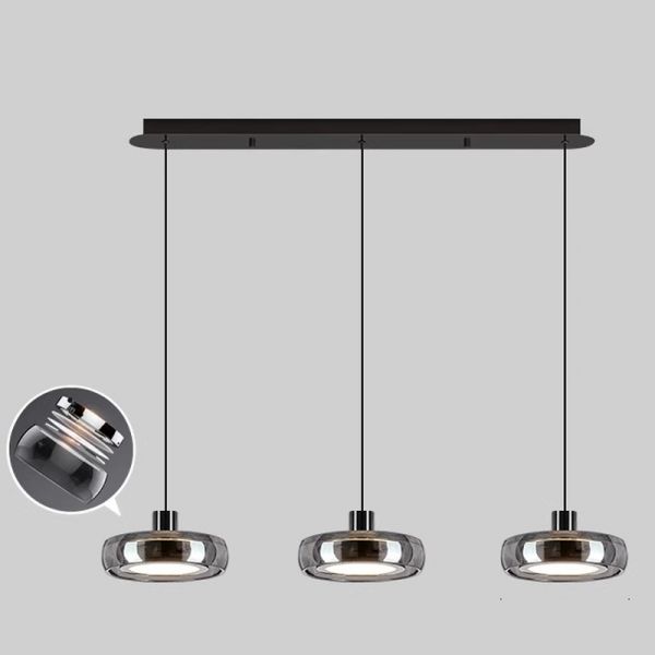 Pendant Lamp with Dove Grey Shade, 3 Lights, Third Gear Color Temperature, LED, Glass Material, String Mounting, 110V-120V