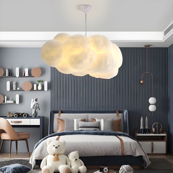 Whimsical Floating Cloud Pendant Light, Ethereal Soft Cotton Hanging Lamp for Bedroom & Nursery - 110V-120V White 16"