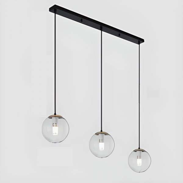 Modern Chrome 3 Lights Globe Ceiling Light with Vitreous Shade and Adjustable Suspension Length, Clear, 110V-120V, 29.5"