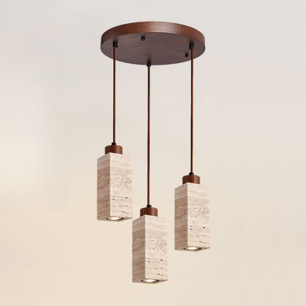 Japandi Natural Travertine Pendant Light, Hand-Finished Stone Hanging Lamp for Kitchen & Bedside - 110V-120V Rectangle 3 (round canopy)