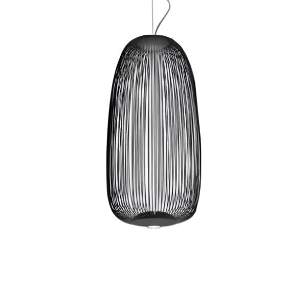 Modern 1 Light Caged Pendant Lamp with Gunmetal Textured Fabric Cover, Led & Incandescent/ Fluorescent, 110V-120V, Black, 10"