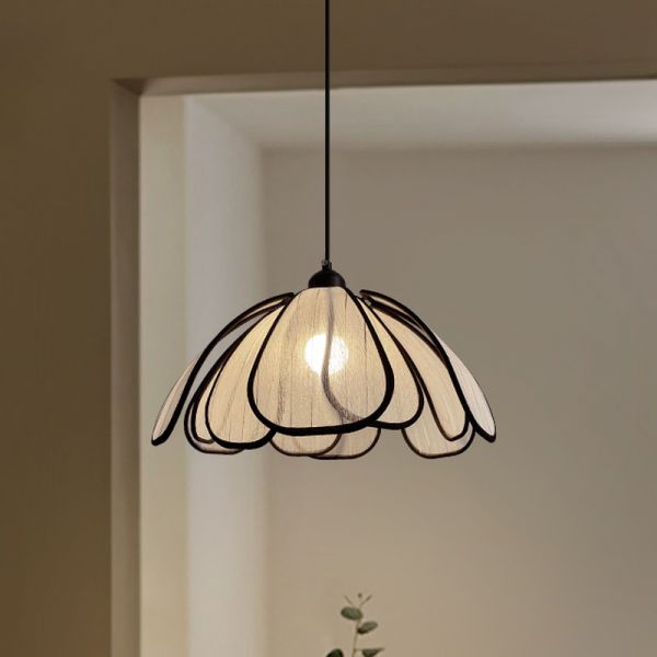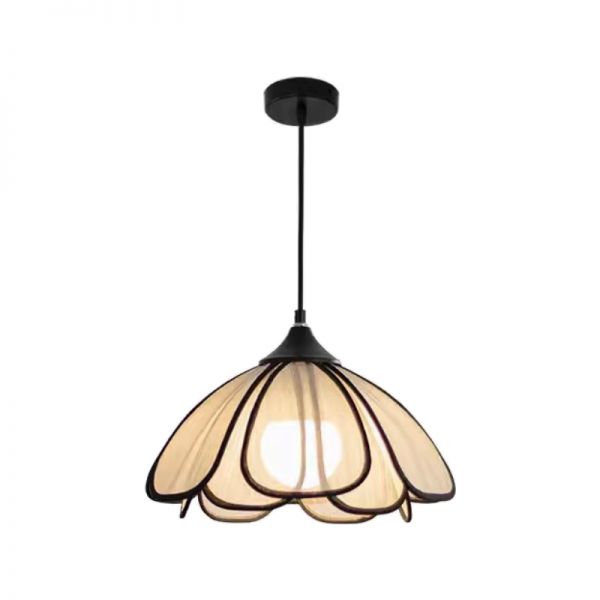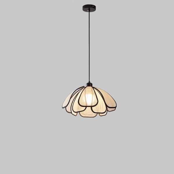 Petal Shape Ivory Fabric Pendant with Cord Mounting, Hardwired for Residential Use, Enclosure Included, 110V-120V, 12"