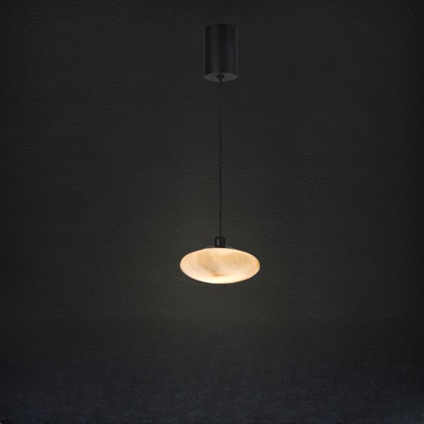 Pendant Lamp with Stone Shade, LED Light Fixture, Angular Chalk Design, Customizable Hanging Length, Classic Style and Cover Included, 110V-120V, 12