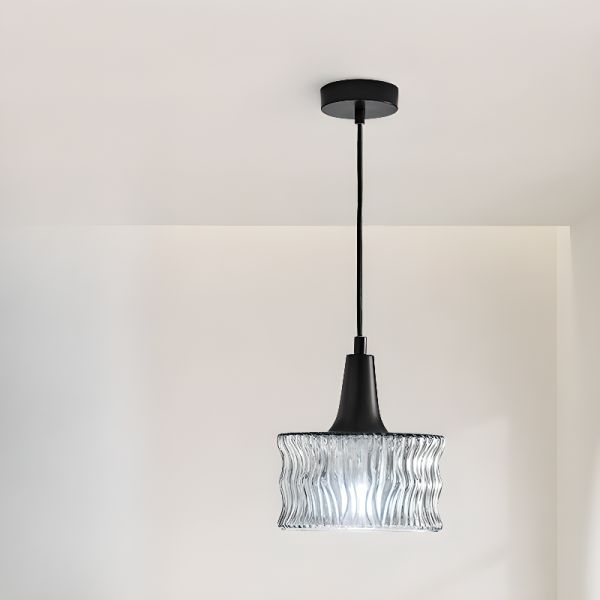 Water Glass Clear Pendant Geometric Glass Cord Hardwired Light for Residential Use, Black, 110V-120V