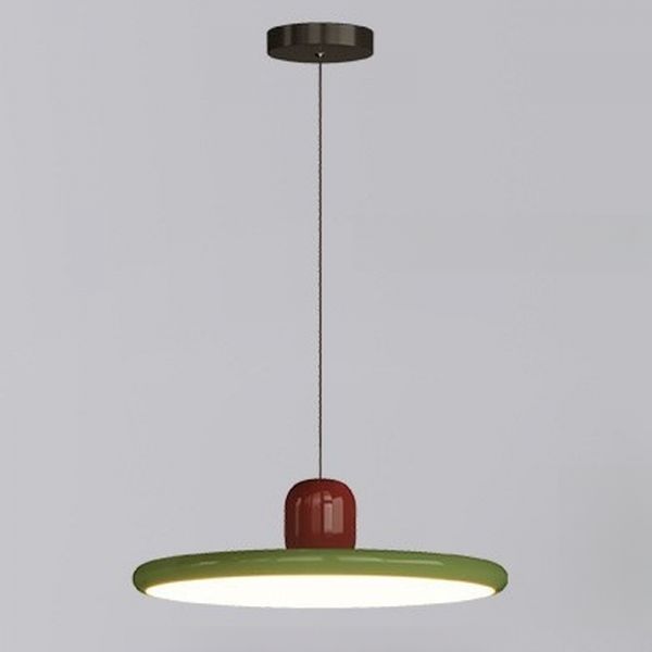 Pendant Lamp with Polymer Shade, LED Light, Regular White Fixture and Customizable Hanging Length, Green, 110V-120V, 12", Swing Arm Style