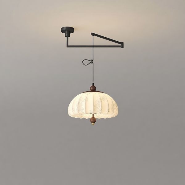 Ceramic Shade Ceiling Lamp with Tether Mounting, Geometric Fixture, White Shade for Residential Use, Ultra Modern Style, Adjustable Suspension Length, 110V-120V, 12.99" (33cm)