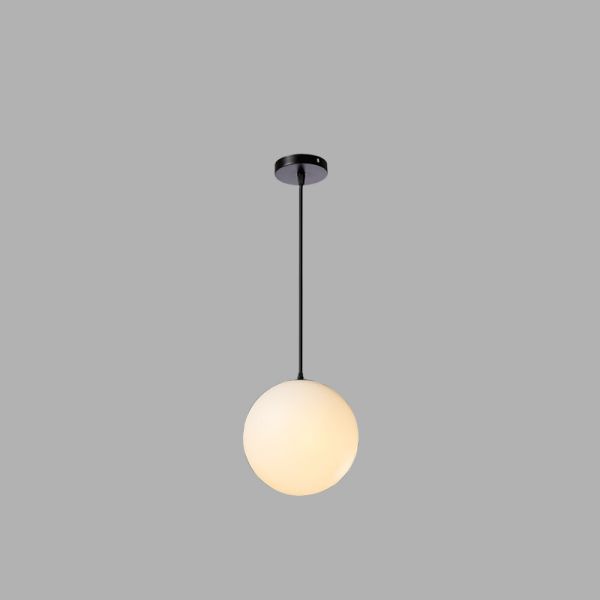Minimalist Spherical Drop Pendant Milk Glass 1-Light Dining Room Hanging Light Fixture in Black - 110V-120V Black 6"