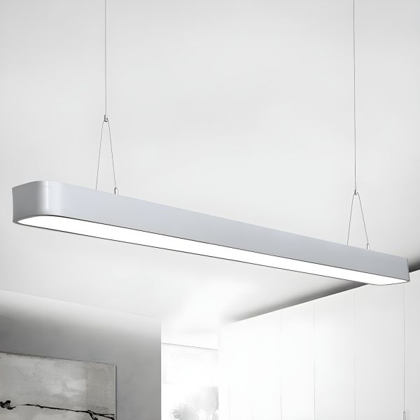 Minimalist Linear LED Pendant Light, Aluminum Suspension Office Lamp with Glare-Free Acrylic Diffuser - Silver 110V-120V