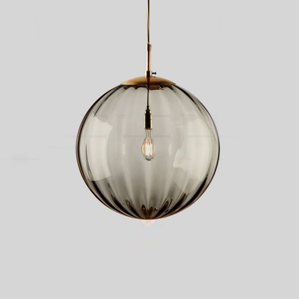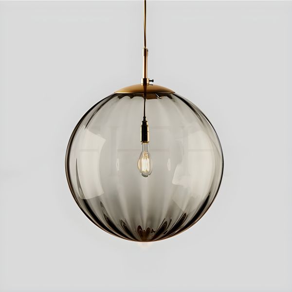 Modern Art Deco Ribbed Glass Pendant Light, Colored Sphere Fixture for Dining Room & Bedroom - Smoke Gray 110V-120V