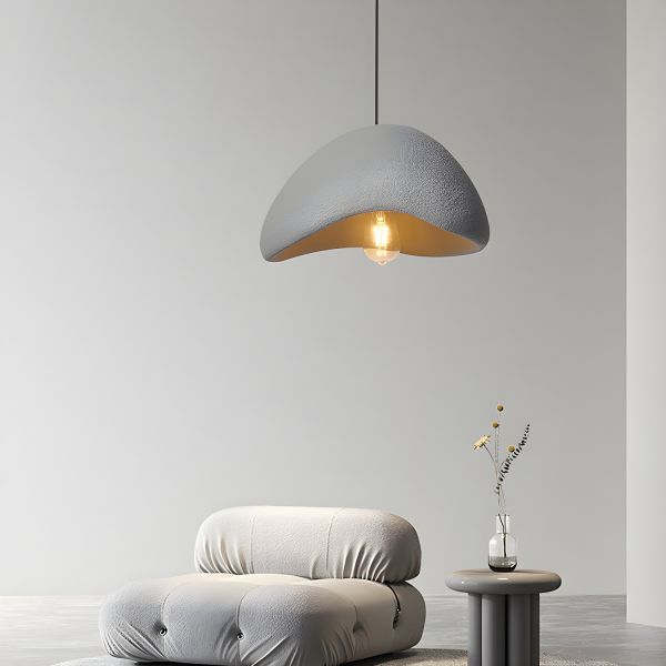 Wabi-Sabi Minimalist Dome Pendant Light, High-Density Polystyrene Fixture for Dining Room & Cafe - 110V-120V Grey 30 cm Conical