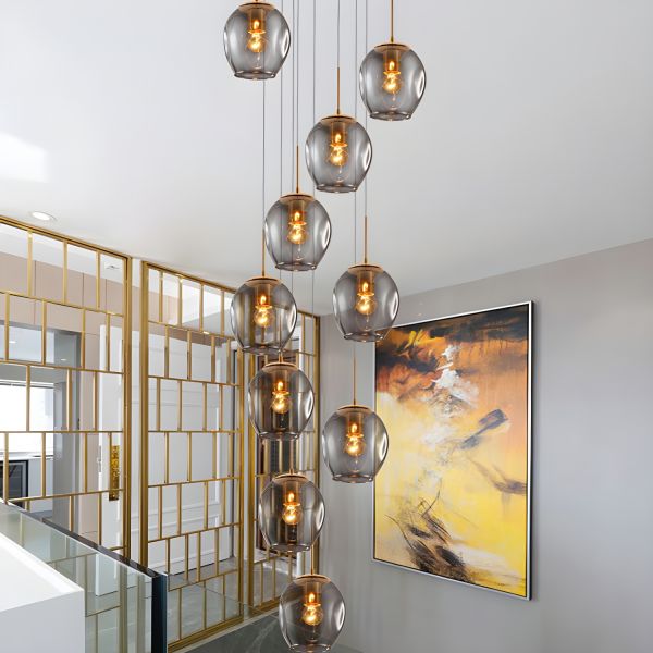 Stairs Pendant Light Fixture Clear Glass Minimalism Ten Blub Hanging Light - 110V-120V Grey