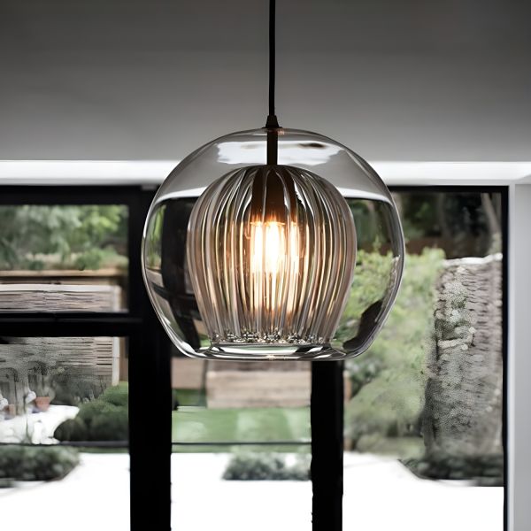 Mid-Century Fluted Glass Globe Pendant Light for Ambient Dining & Kitchen Lighting - 110V-120V Smoke Gray 6"