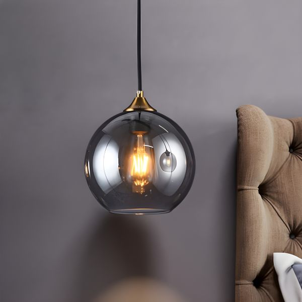 Industrial Glass Globe Pendant Light, Adjustable Hanging Fixture for Kitchen Island - 110V-120V 1 Round Smoke Grey