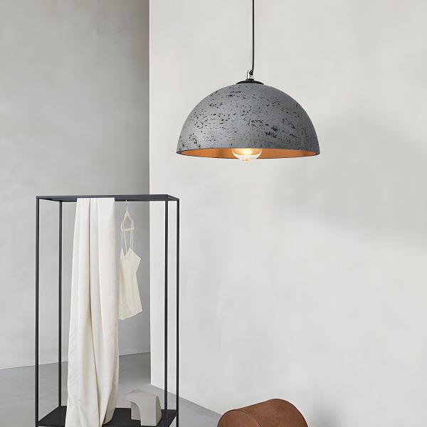 Rustic Industrial Dome Pendant Light - Textured Cement Look Hanging Lamp for Kitchen Island - 110V-120V Grey