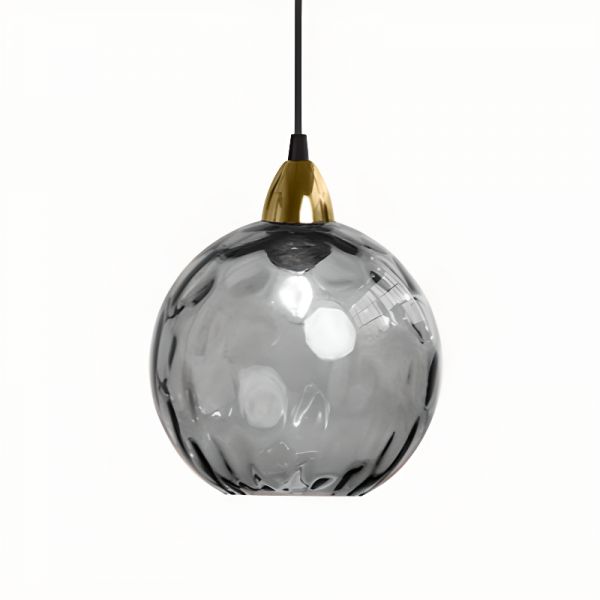 1 Bulb Dinning Room Down Lighting Modern Black Ceiling Light with Orb Smoke Gray Dimpled Glass Shade