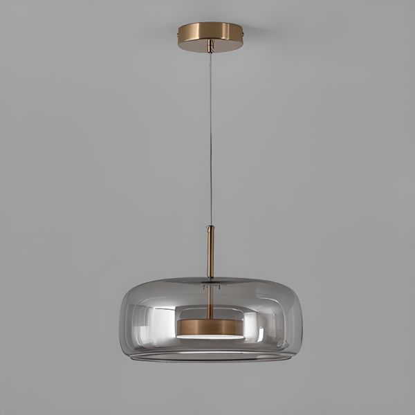 Glass Shade Metal LED Hanging Pendant Lights Nordic Style Pendant Lamp for Dinging Room - 110V-120V Smoke Gray Drum