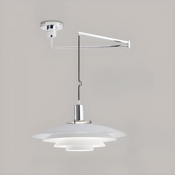 Modern White Pendant Light with Adjustable Hanging Length and Geometric Design - Chrome 110V-120V