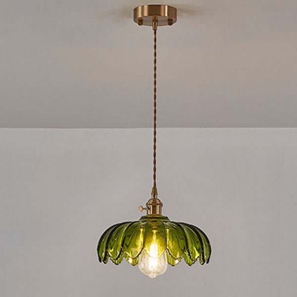 Light Green Pendant Lighting with Ambient Light Shade, LED Angular Vitreous Fixture for Residential Use, 1, 110V-120V, Petal