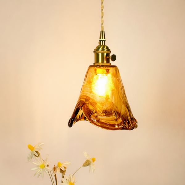 Brass Crackle Glass Petal Ceiling Lamp, 110V-120V, 14"