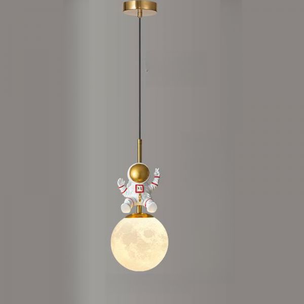 Brass Kids Ceiling Lamp with Ambient Light LED Globe Shade in Vitreous, Beige, 110V-120V