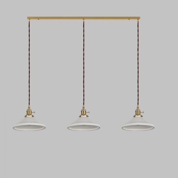 Ceramic Ceiling Lamp with 3 Lights in Tethered Geometric Design and White Shade for Ultra Modern Residential Use, 110V-120V, Pure Copper
