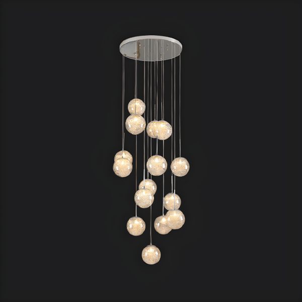 Contemporary Cascading Glass Chandelier, Spiral Sphere Pendant with Internal Wire Mesh & Adjustable Drop - Chrome 110V-120V 15