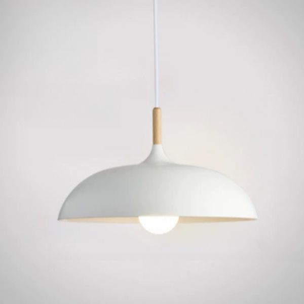 Modern Nordic Wooden Top Pendant Light Dome Metal Shade 1-Light Pendant Lighting for Dining Room Table - 110V-120V White