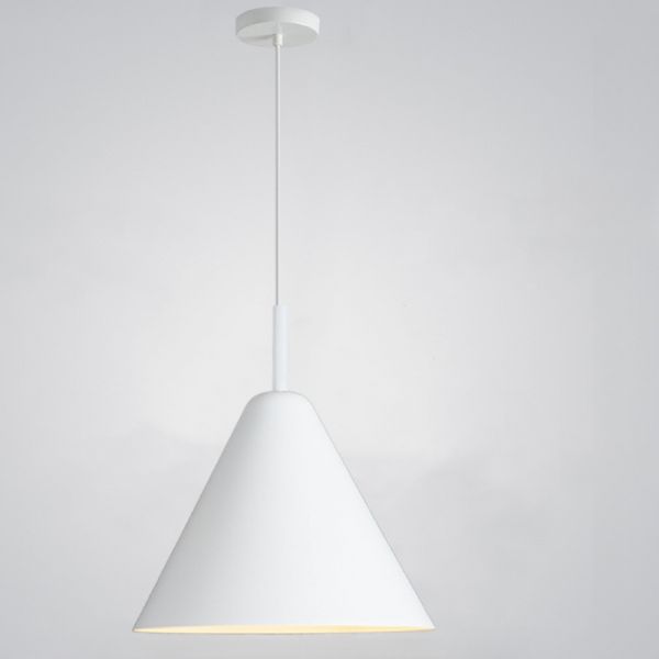 Modern Simple Style Pendant Lamp with Cone Shaped Fixture, Chalk Aluminum Shade, Led & Incandescent/Fluorescent Light, Cord Mounting, White, 110V-120V