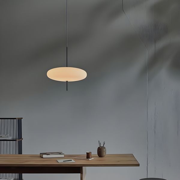 Scandinavian Disc Pendant Light, Matte LED Hanging Fixture with Diffuser for Dining Room & Kitchen - White 110V-120V