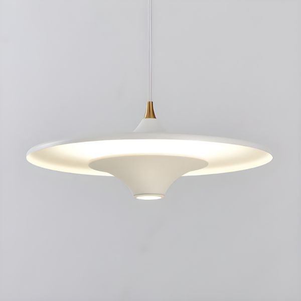 Scandinavian UFO Pendant Light, Dual-Zone LED Hanging Fixture with Anti-Glare Spotlight - 110V-120V White