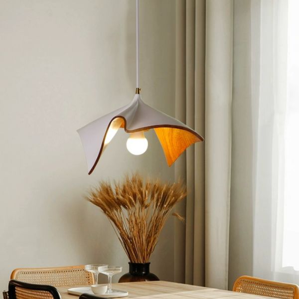 Scandinavian Wave Pendant Light, Wood Grain Hanging Lamp for Kitchen Island & Dining - White 110V-120V