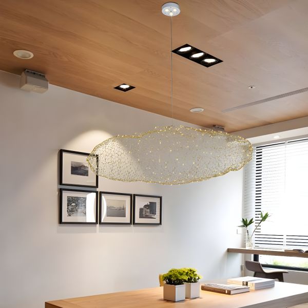 Contemporary Sculptural Cloud Pendant Light, Hand-Woven Wire Mesh LED Chandelier with Canopy Spotlights - 110V-120V White 41 cm