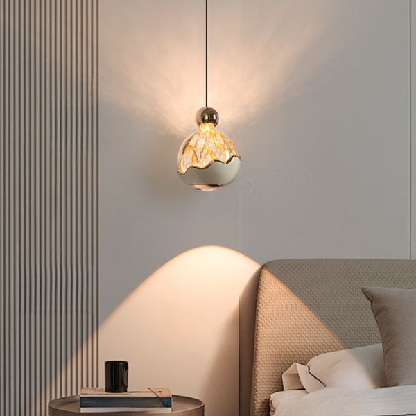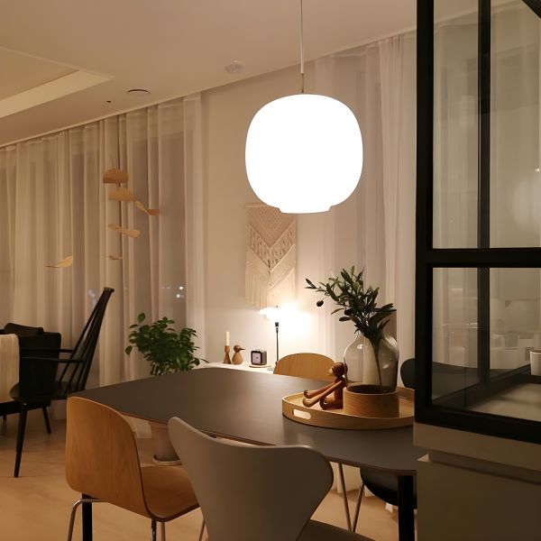Mid-Century Cocoon Pendant Light, Sculptural Hanging Lamp with Diffused Warm Glow, Japandi Style Ceiling Fixture - 110V-120V Globe 12"