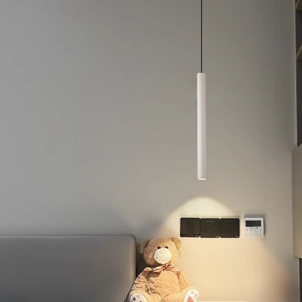 Minimalist Cylinder Pendant Light, Slim Aluminum Tube Suspension Fixture for Kitchen Island Dining - 1 White 110V-120V 16"