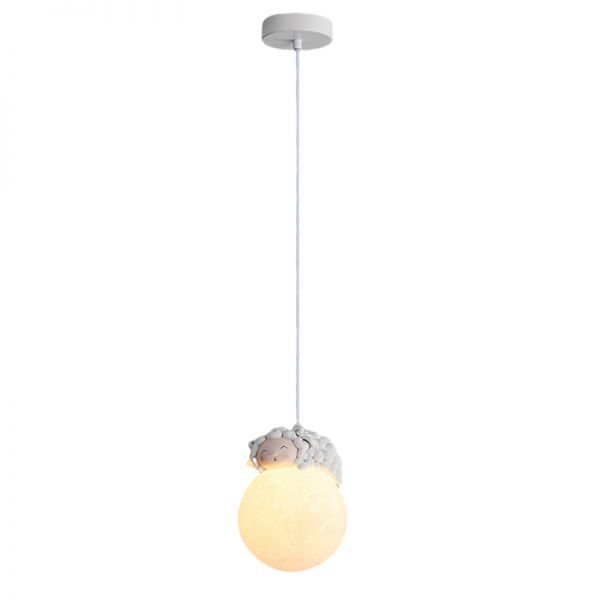 Whimsical Nordic Nursery Pendant Light with Textured Moon Shade and Sculpted Resin Animal Figurine - 110V-120V Sheep