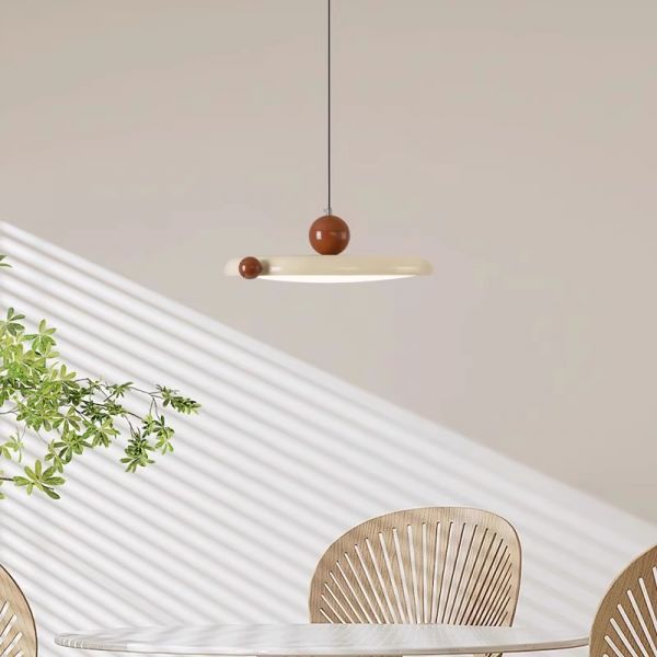 Mid-Century LED Disc Pendant Light, Minimalist Hanging Fixture with Geometric Sphere Accent - 110V-120V 16" Cream