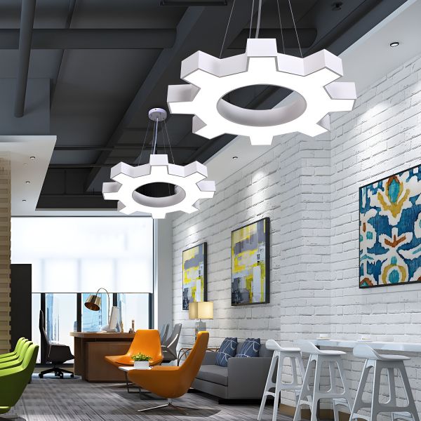 Industrial Modern LED Gear Pendant Light, Mechanical Cog Chandelier for Commercial Loft and Gym - 110V-120V White 60 cm