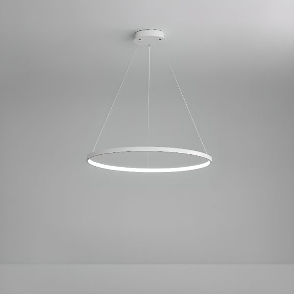 Minimalist Circular LED Pendant Light, Architectural Hanging Ceiling Fixture for Office & Studio - 110V-120V White 16"