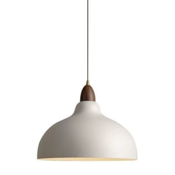 Scandinavian Metal Dome Pendant Light with Walnut Finish Detail for Kitchen Island Dining - 1 White 110V-120V 18 cm