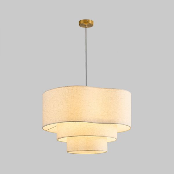 1 Light Direct Wired Electric Adjustable Suspension Length Tiered Pendant with Beige Textile Cover for Residential Use, 110V-120V, 16"